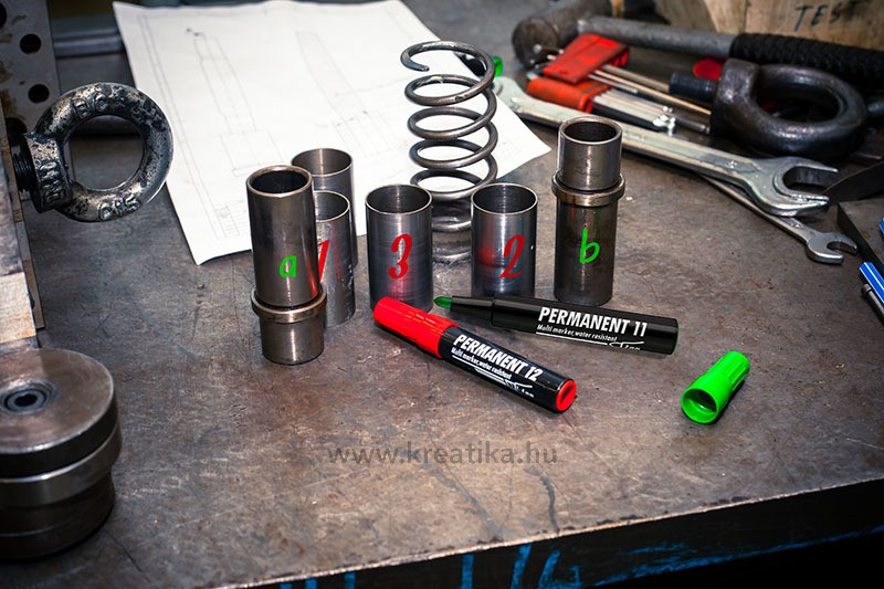 Műanyag filctest. Vágott csúcs. Alkoholbázisú festékkel töltött permanent marker. Gyorsan száradó festék, írásképe törlés- és vízálló. Műanyag üveg, fém, fa, illetve szinte minden felület jelölésére alkalmas. 1-4 mm-es vonalvastagság.