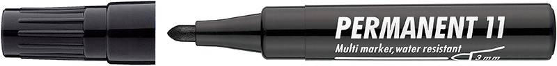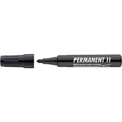 Műanyag filctest. Kerekített (gömb) csúcs. Alkoholbázisú festékkel töltött permanent marker. Gyorsan száradó festék, írásképe törlés- és vízálló. Műanyag üveg, fém, fa, illetve szinte minden felület jelölésére alkalmas. 3 mm-es vonalvastagság.