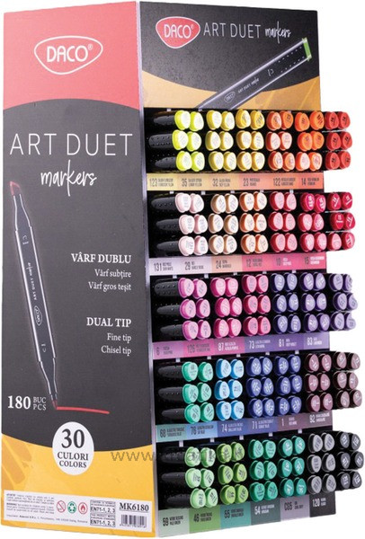 Alkoholos marker display 180 db-os kétvégű, vágott és gömb Daco "Art Duet" 30 szín