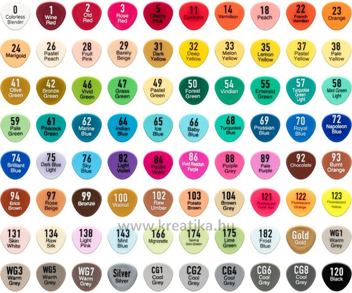 Kétvégű alkohol alapú marker az apróbb részletekhez és vastagabb vonalakhoz, a kupakon színkóddal a könnyű azonosításhoz. Ergonomikus kialakítás, gyorsan szárad és nem hagy foltot. Papír, üveg, fa és műanyag felületen is használható. Tökéletes tervezéshez, kezdő művészeknek és manga rajzolóknak. Könnyen használható és nem toxikus.