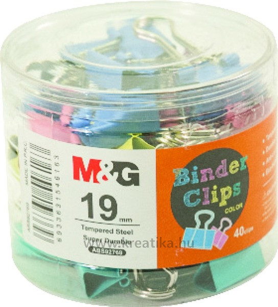 Bindercsipesz 19 mm 40 db/doboz M&G vegyes színek