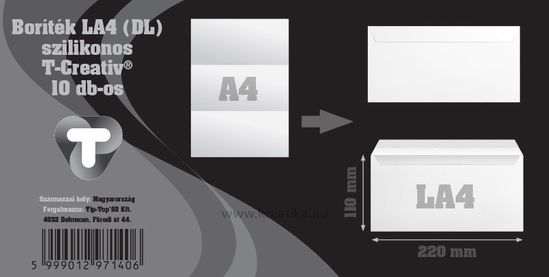 Boríték LA/4 szilikonos, bélésnyomott  T-Creativ