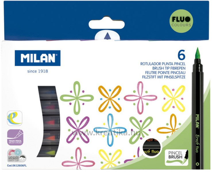 Ecsetfilc készlet 0,5-6 mm Milan "Fluo" 6 szín