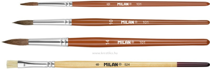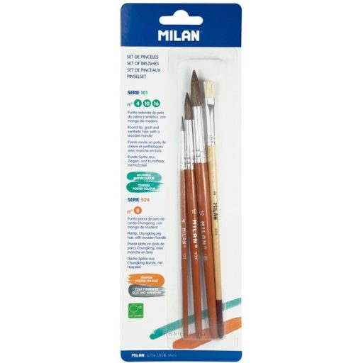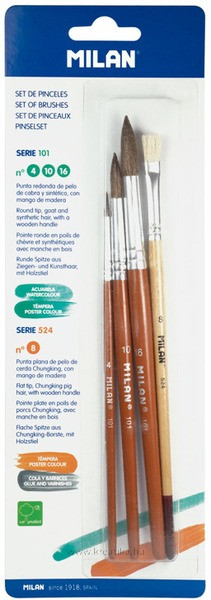 Ecsetkészlet 4 db (4, 10, 16) póniszőr és sertéssörte Milan