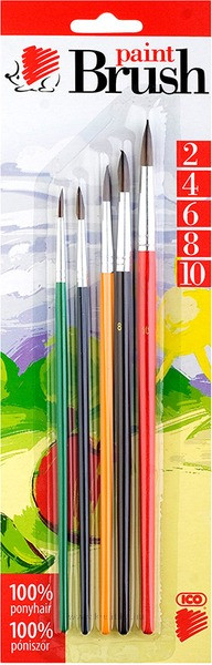 Ecsetkészlet 5 db (2, 4, 6, 8, 10) festett fa ICO Süni