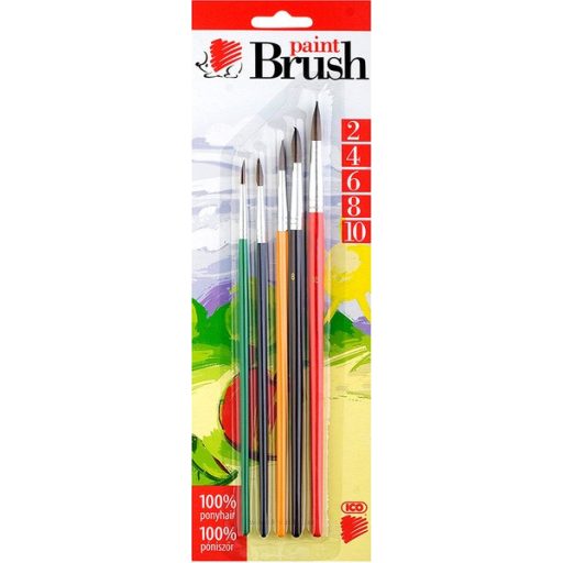 Póniszőr ecsetrész. Festett vagy natúr nyél. 5-as készlet: 2-es, 4-es, 6-os, 8-as, 10-es.