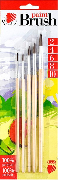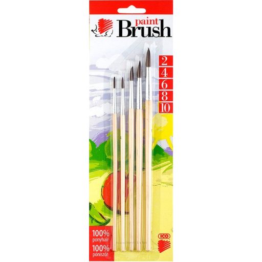 Póniszőr ecsetrész. Festett vagy natúr nyél. 5-as készlet: 2-es, 4-es, 6-os, 8-as, 10-es.