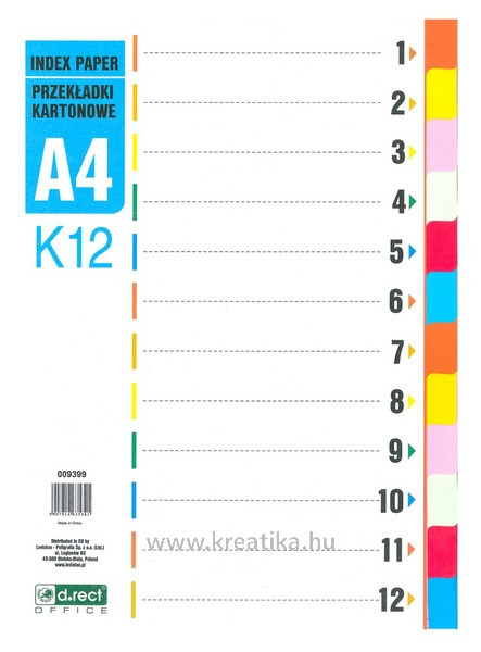 Elválasztólap A/4 1-12, karton d.rect