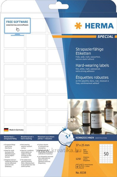 Etikett 37x25 mm 50 címke, 25 ív/doboz időjárásálló Herma