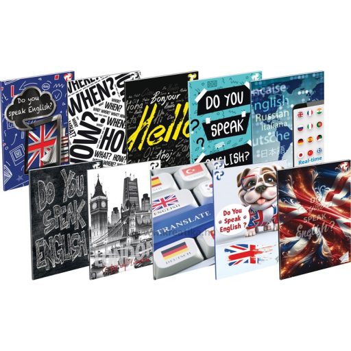 32 lapos, 70g-os hófehér belív. 200 g-os műnyomó borító + fényes fólia. Magyar szabványnak megfelelő vonalazás. 20 db/csomag, vegyes mintákkal.