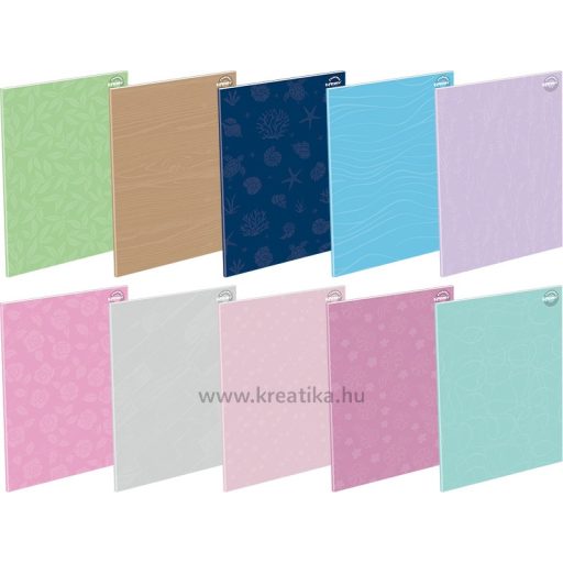 40 lapos tűzött füzet, 70 g-os hófehér famentes belív. 300 g-os műnyomó borító. 10 db/csomag. Magyar szabványnak megfelelő vonalazás. Méret: 202x290 mm.