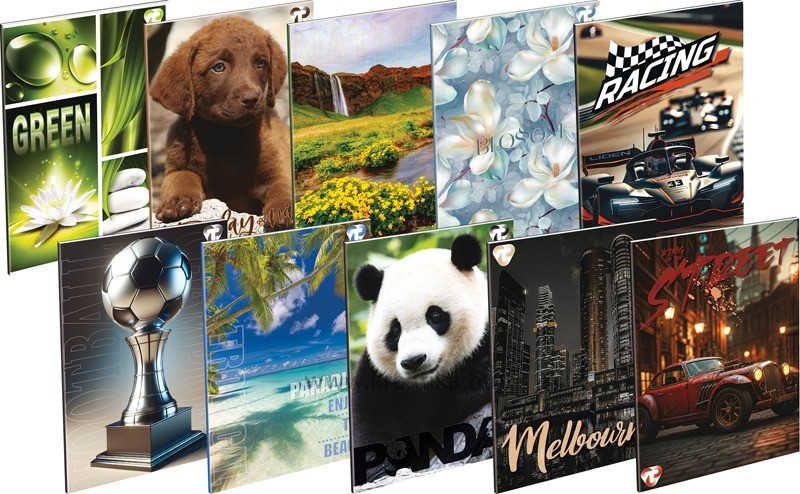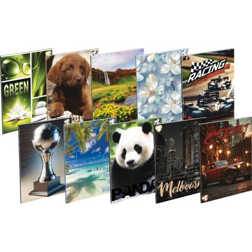 60 lapos tűzött füzet, 70 g-os hófehér belív. 250 g-os műnyomó borító. Magyar szabványnak megfelelő vonalazás. 10 db/csomag