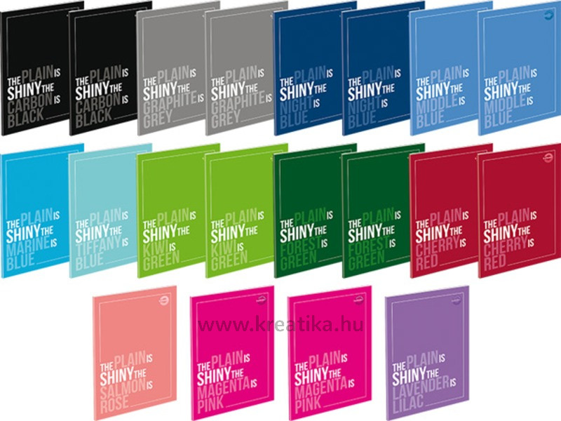 40 lapos tűzött füzet, 70 g-os hófehér belív. 300 g-os színes, műnyomó borító. Bársony fólia+UV lakk, 20 db/csomag