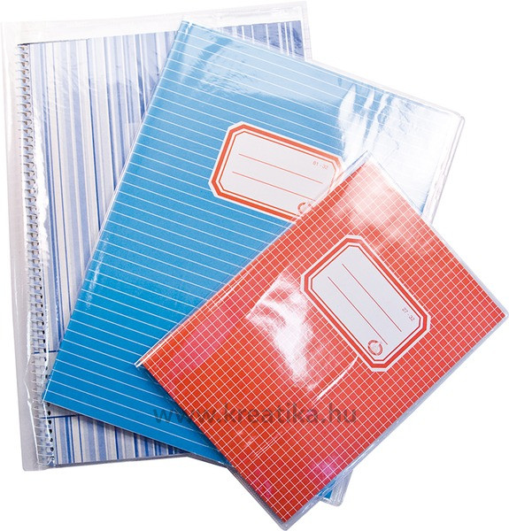 120 mikronos, víztiszta A/4-es PVC füzetborító||T-Creativ A/4-es füzetre és spirálfüzetre||Herlitz, Ars Una A/4-es füzetre