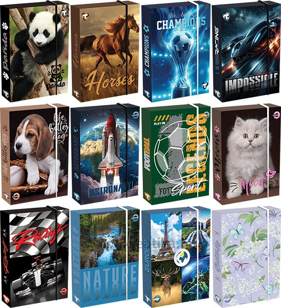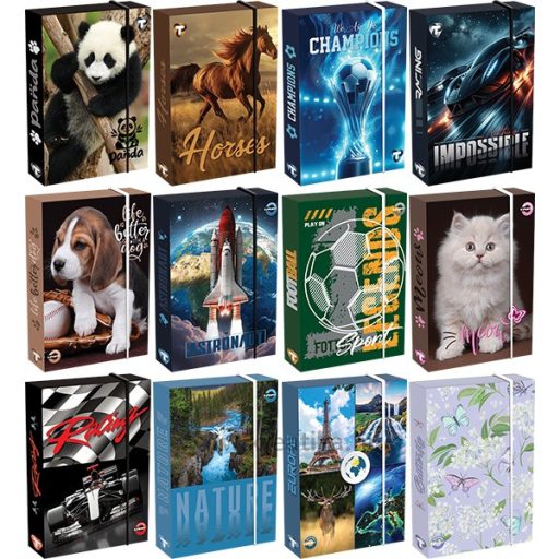 Fényes fóliázott, 1200 g/m2-es kemény, karton alapanyag. Széles fekete vagy fehér gumipánttal. Folyamatosan megújuló minták.