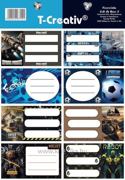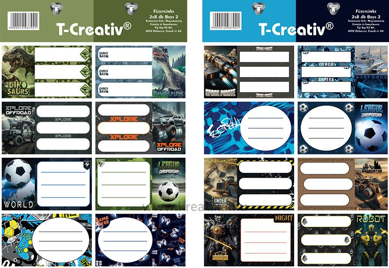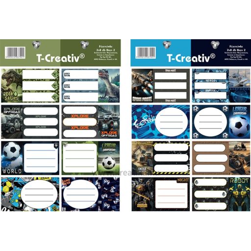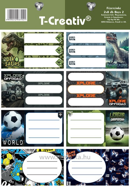Füzetcímke, akasztós 2 ív/csomag T-Creativ "Boys II.