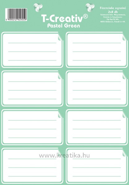 Füzetcímke, keretes és akasztós 2 ív/csomag T-Creativ "Pastel Green