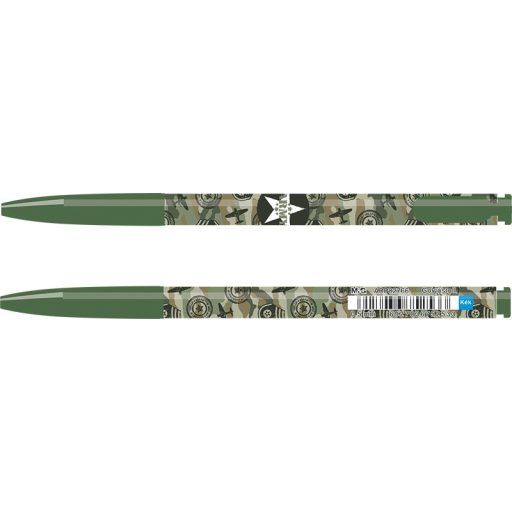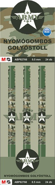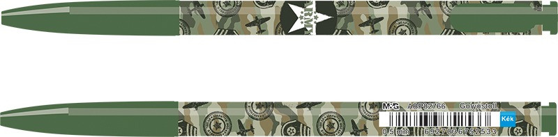mintás műanyag tolltest • nyomógombos szerkezet • gumírozott fogórész • színes, műanyag klip, nyomógomb és írócsúcs