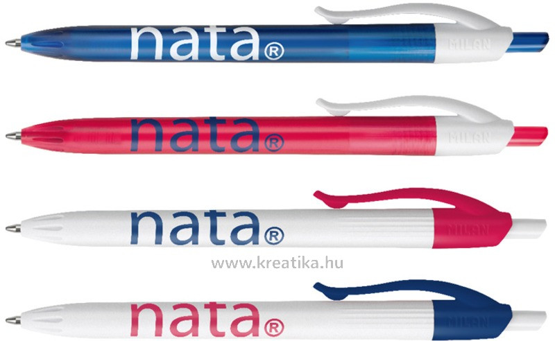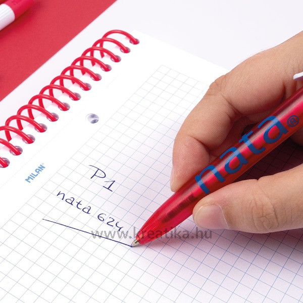 Nata 624 radír ihlette dizájn. Nyomógombos tollszerkezet. 1200 m íráshossz. 1 mm-es golyóátmérő, kék tinta.