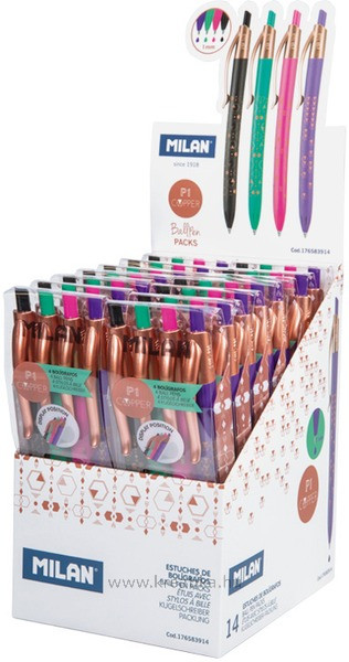 Golyóstoll készlet 1 mm 4 db-os Milan P1 "Copper" vegyes színek
