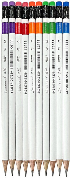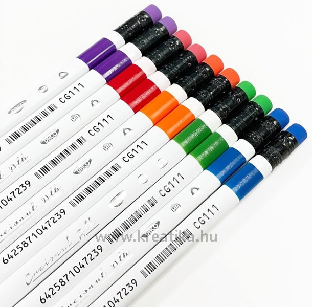 Kiváló minőségű író- és rajzolóeszköz, háromszög alakú fa testtel és standard HB heggyel. Modern fehér dizájn, színes, beépített radír a végén.