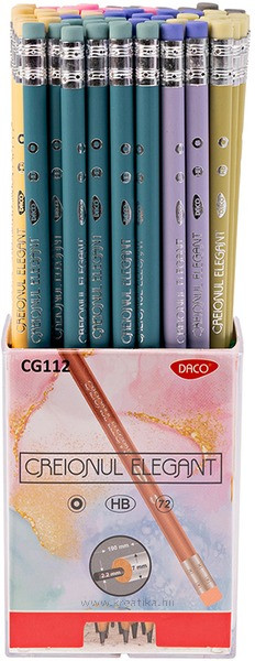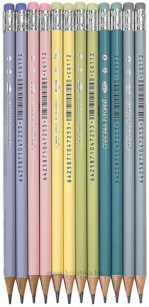 Kiváló minőségű író- és rajzolóeszköz, kerek fa testtel és standard HB heggyel, különböző színekben. Színes, beépített radír a végén.