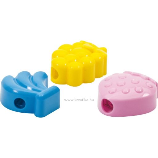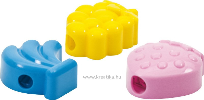 1 lyukú műanyag hegyező, kiváló minőségű pengével. Gyümölcs forma.