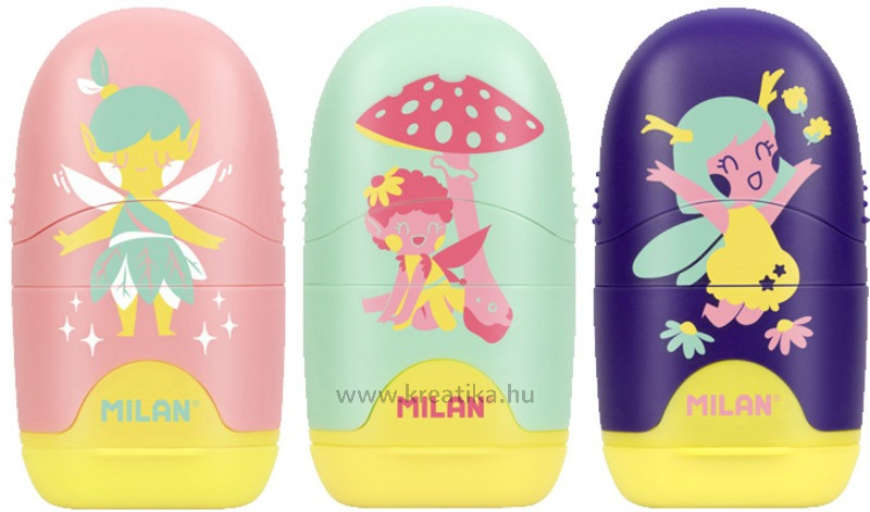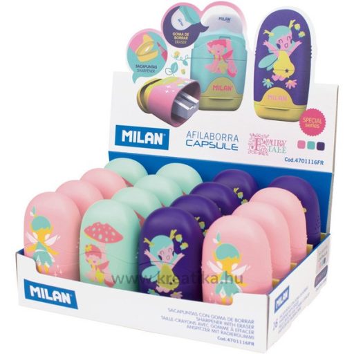 Hegyező 1 lyukú, tartályos, radírral Milan "Capsule" Fairy Tale