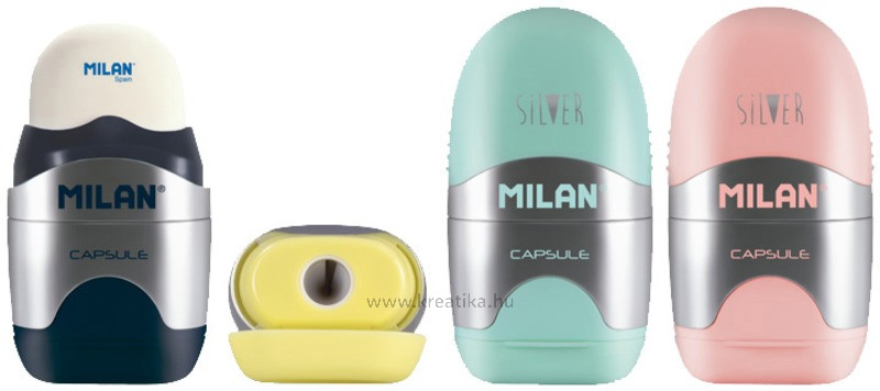 Hegyező 1 lyukú, tartályos, radírral Milan "Capsule" Silver