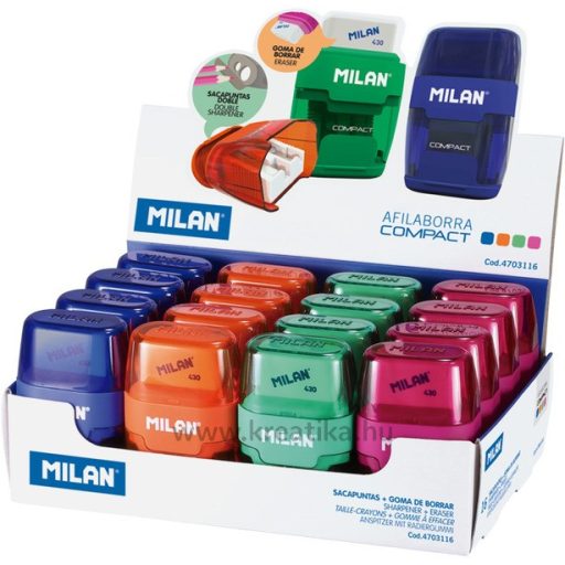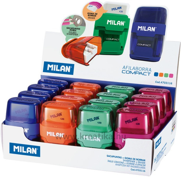 Hegyező 2 lyukú, tartályos, radírral Milan "Compact