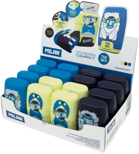 Hegyező 2 lyukú, tartályos, radírral Milan "Compact" Yeti
