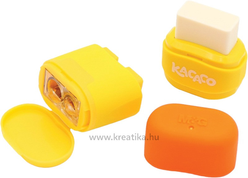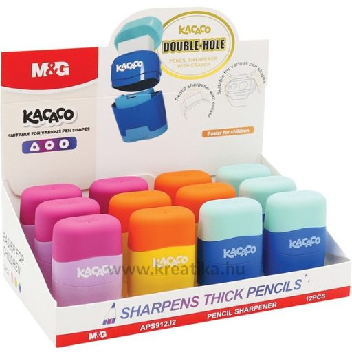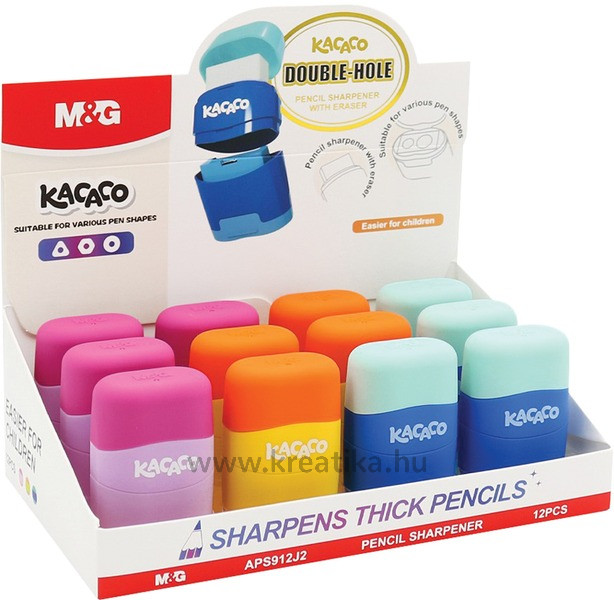 Hegyező 2 lyukú, tartályos, radírral M&G "Kacaco