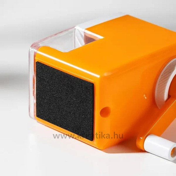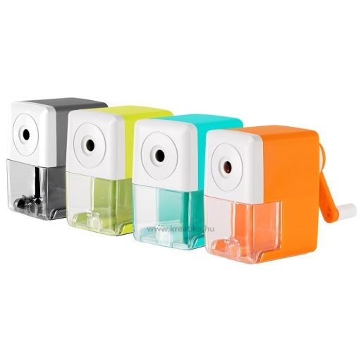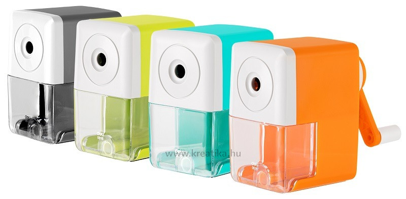 Asztalra rögzíthető, tartályos hegyezőgép. Elsősorban iskolai használatra ajánlott.