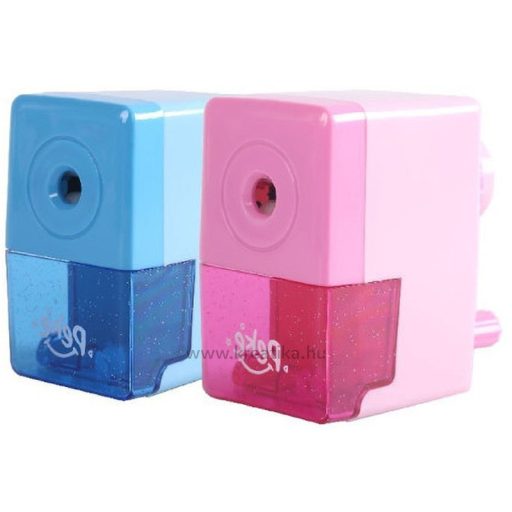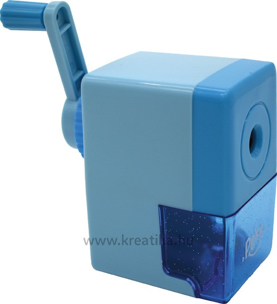 Egyszínű, műanyag 1-es, tartályos asztali hegyezőgép. Üríthető forgácstartállyal, fém hegyező szerkezettel. Iskolai és irodai használatra.