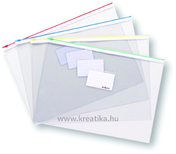 PVC alapanyag, színes húzózár, légmentesen záródó irattasak.