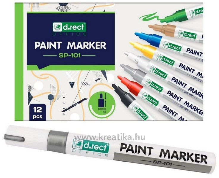 Kerek csúcs. Lakkszerűen fedő, permanent festék, mely kiválóan alkalmas számos felületre való íráshoz. Xylene- és toluenementes. Szagtalan. Alumínium test. 1-3 mm-es vonalvastagság