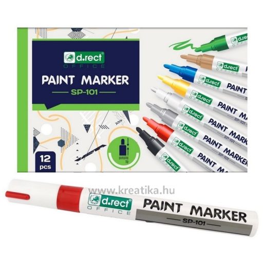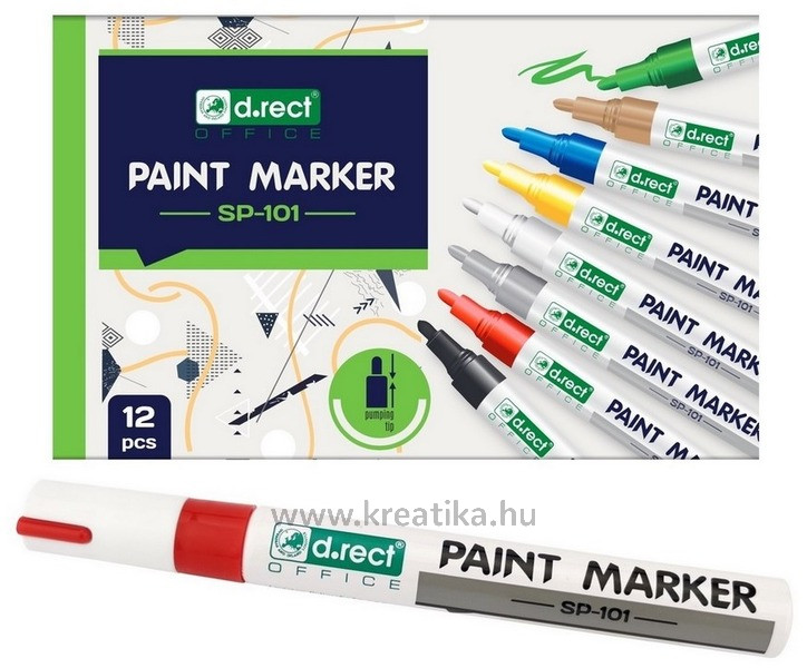Kerek csúcs. Lakkszerűen fedő, permanent festék, mely kiválóan alkalmas számos felületre való íráshoz. Xylene- és toluenementes. Szagtalan. Alumínium test. 1-3 mm-es vonalvastagság