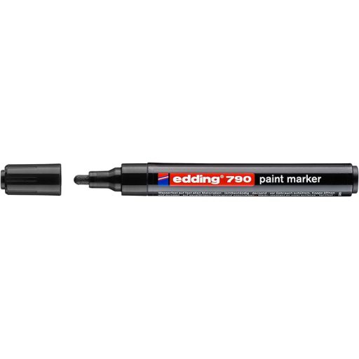 Kerek csúcs. Műanyag test. Lakkszerűen fedő permanent festék. Alkalmas szennyezett felületekre. 2-4 mm-es vonalvastagság.