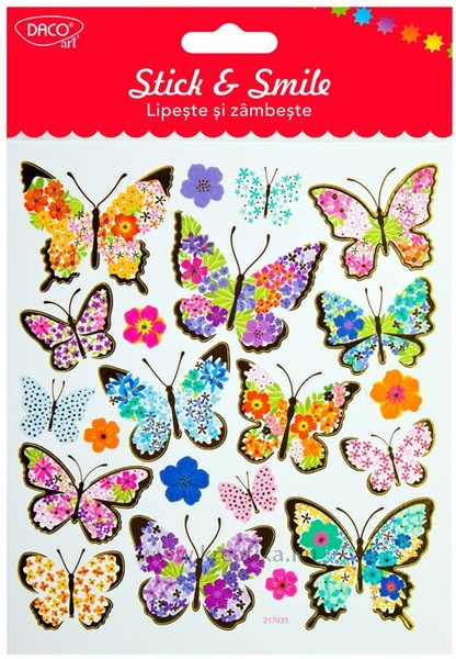 Matrica, arany fólia Daco "Stick & Smile" pillangók