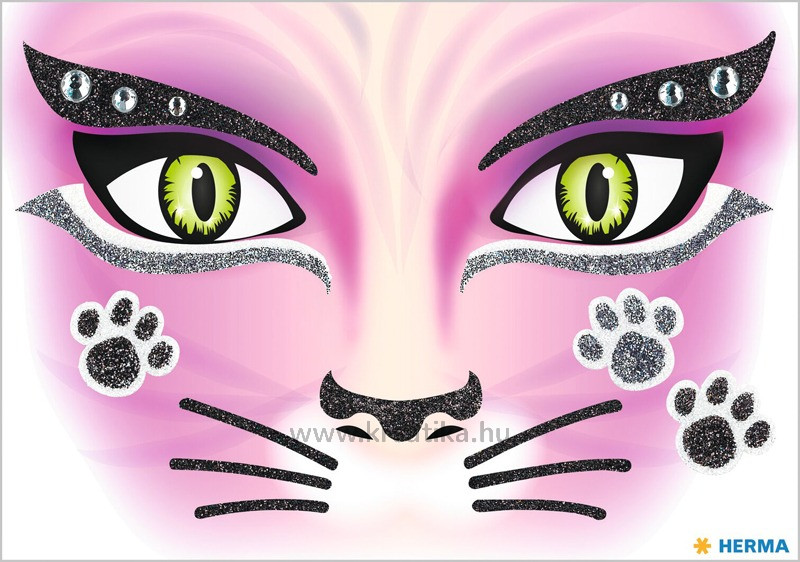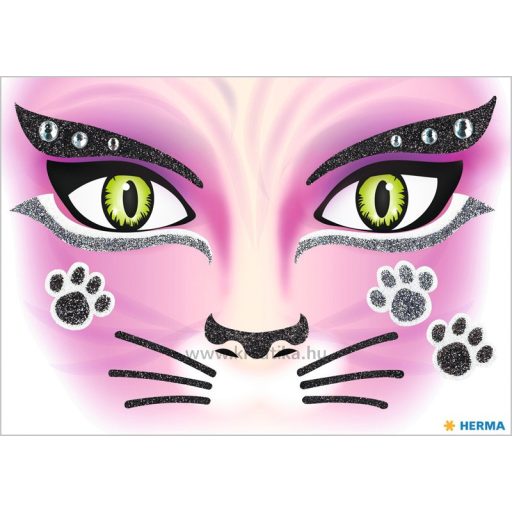 Matrica arc tetoválás Herma "Face Art" Pink Cat
