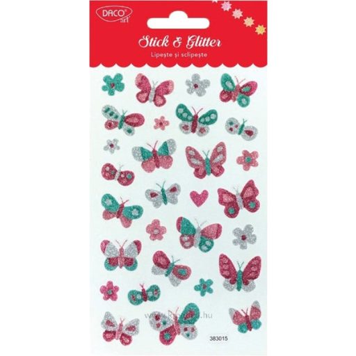 Matrica, glitteres Daco "Stick & Glitter" pillangók