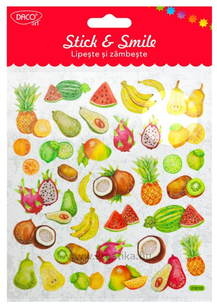 Matrica, glitteres Daco "Stick & Smile" gyümölcsök