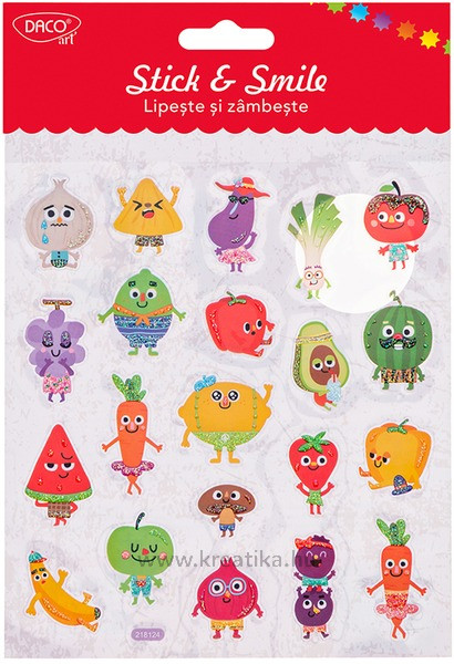 Matrica, glitteres Daco "Stick & Smile" gyümölcsök