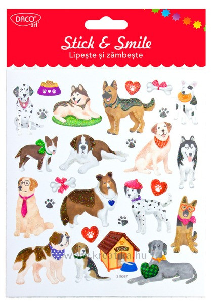 Matrica, glitteres Daco "Stick & Smile" kutyák