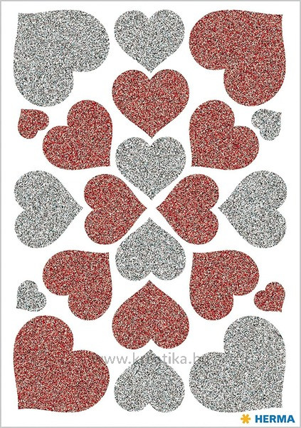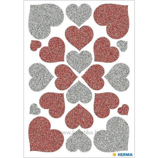Matrica, glitteres Herma "Magic" Hearts piros-ezüst