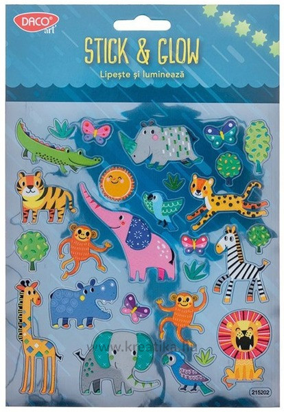 Matrica, sötétben világító Daco "Stick & Glow" afrikai állatok
