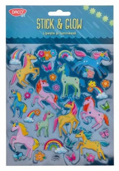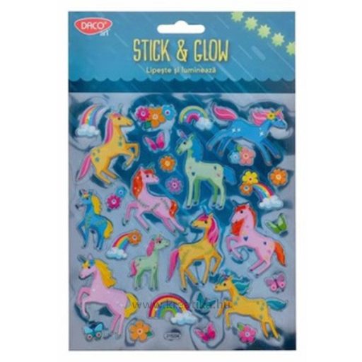 Matrica, sötétben világító Daco "Stick & Glow" unikornisok