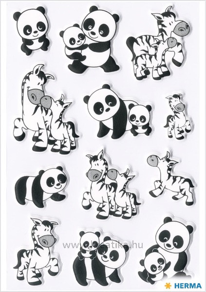 Matrica, szivacsos Herma "Magic" Panda and Zebra Families