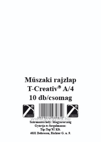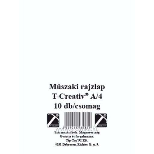 Műszaki rajzlap A/4 170 g, famentes, 10 ív/csomag T-Creativ