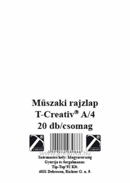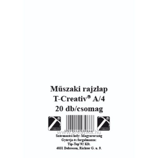 Műszaki rajzlap A/4 170 g, famentes, 20 ív/csomag T-Creativ